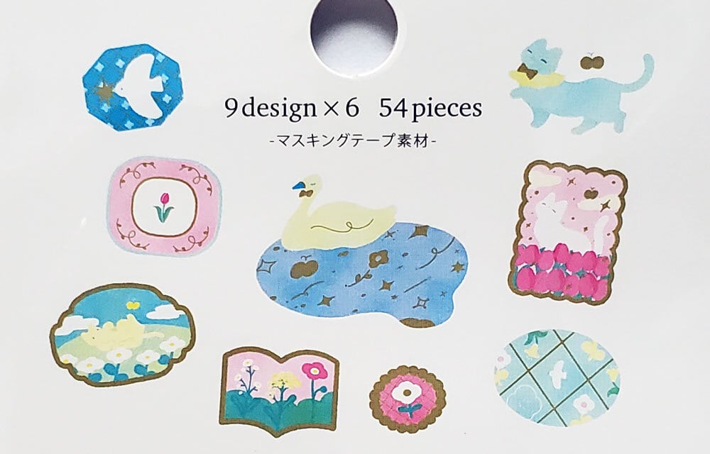 9種×各6枚(計54枚) マスキングテープ素材 金箔入り